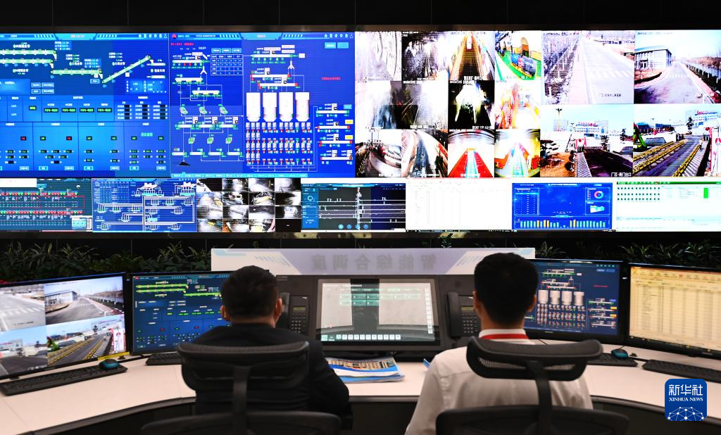 2月29日,工作人员在陕西陕煤曹家滩矿业有限公司煤矿安全生产调度指挥中心实时监测调度。