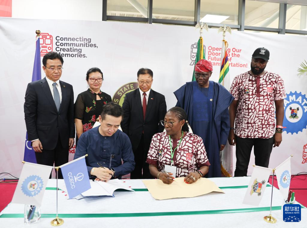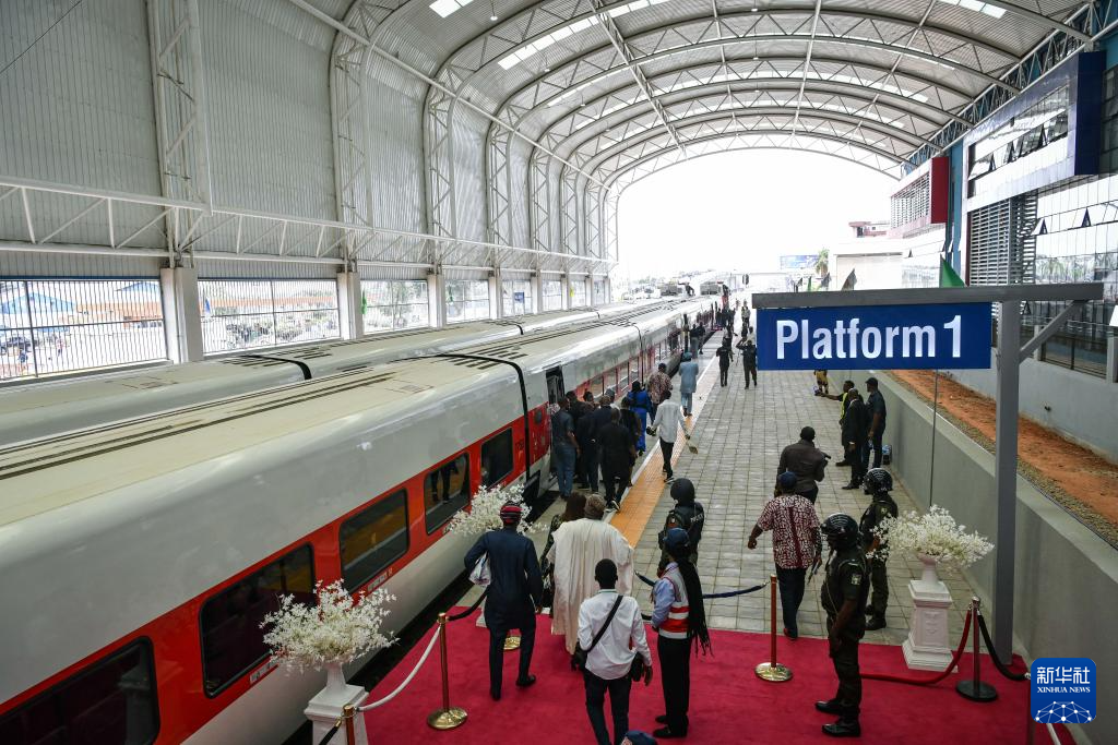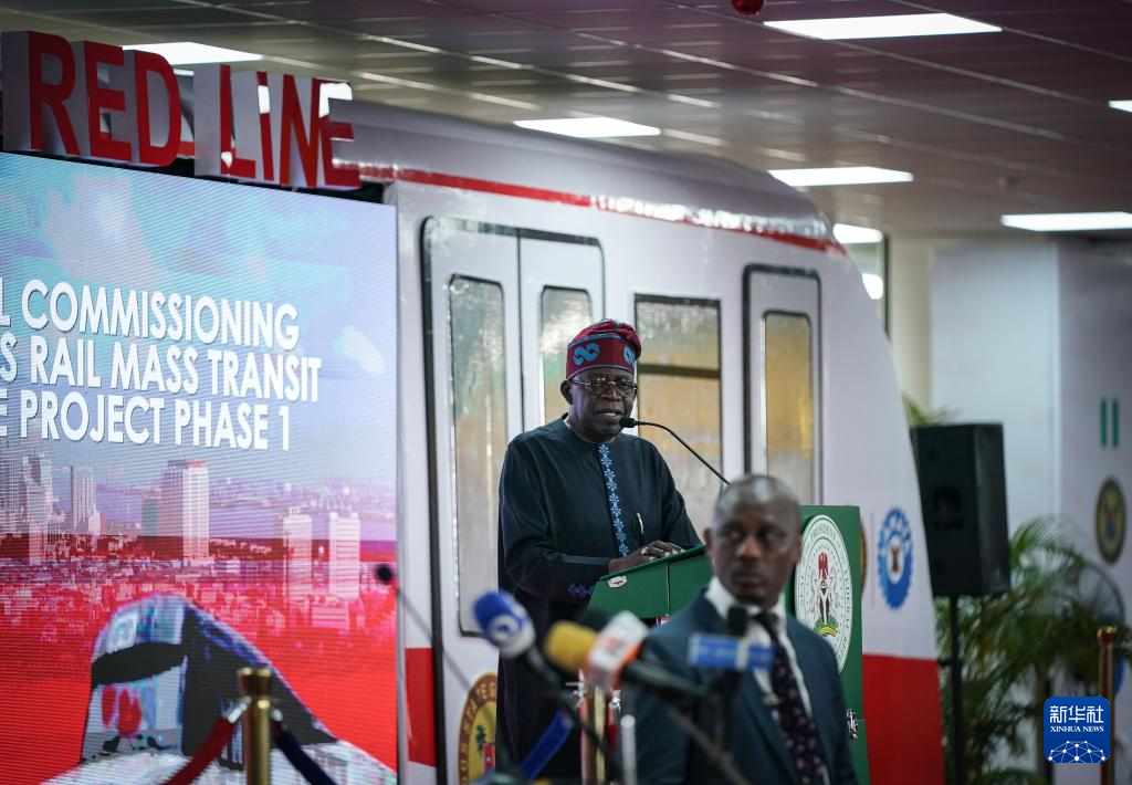 由中企承建、全线采用中国标准的拉各斯轻轨红线项目一期2月29日在尼日利亚拉各斯举行通车仪式,同时举行红线项目二期签约仪式,尼日利亚总统博拉·提努布出席仪式并试乘轻轨列车。