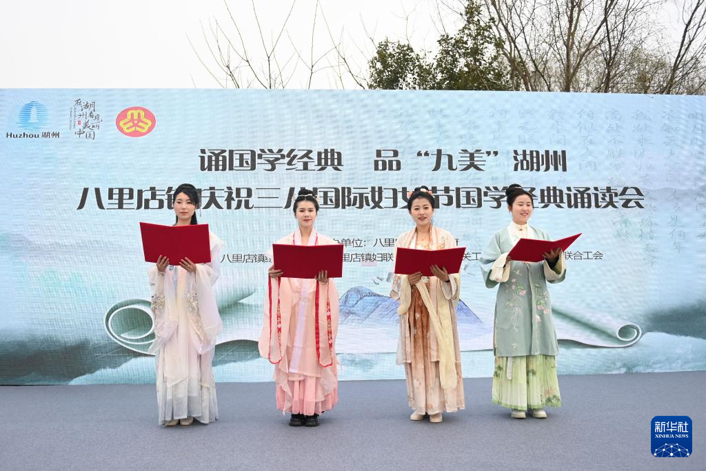 3月1日,吴兴区八里店镇女职工代表参加国学经典诵读会。