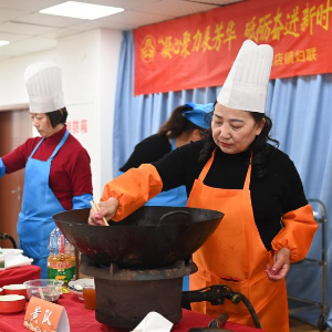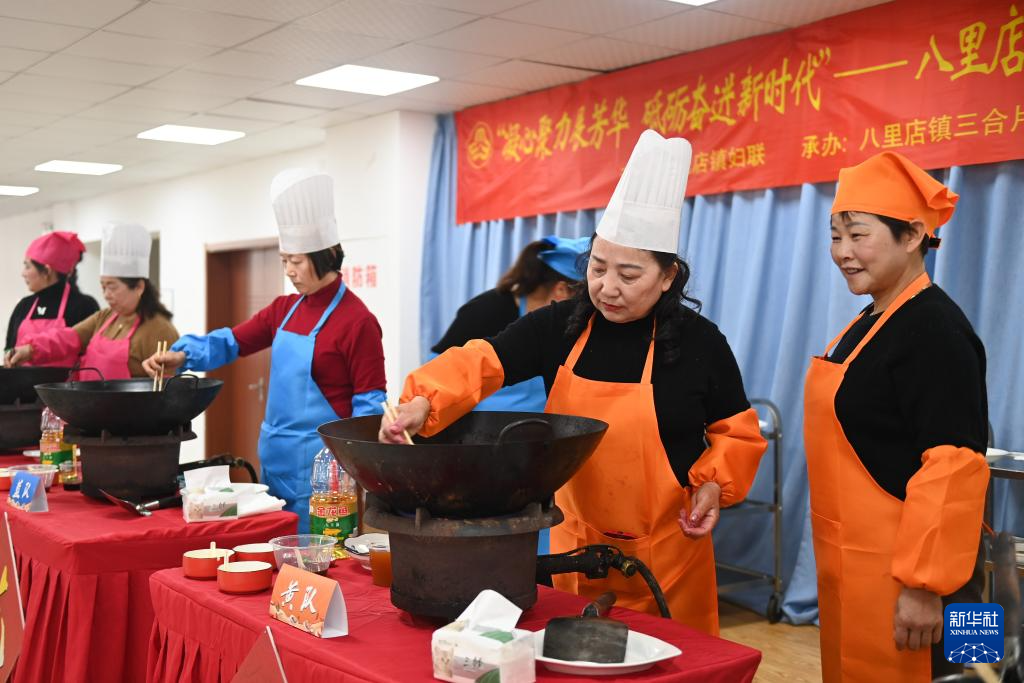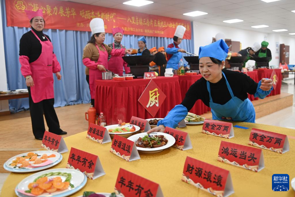 3月1日,吴兴区八里店镇三合片区的居民参加“巾帼厨艺大比拼”活动。