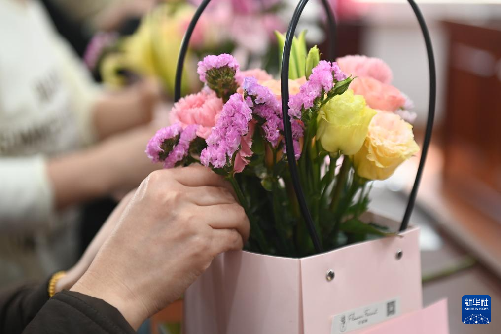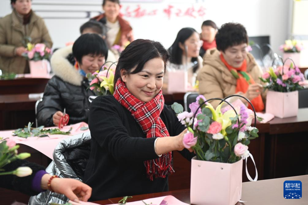 3月1日,吴兴区八里店镇西山片区的居民体验插花。