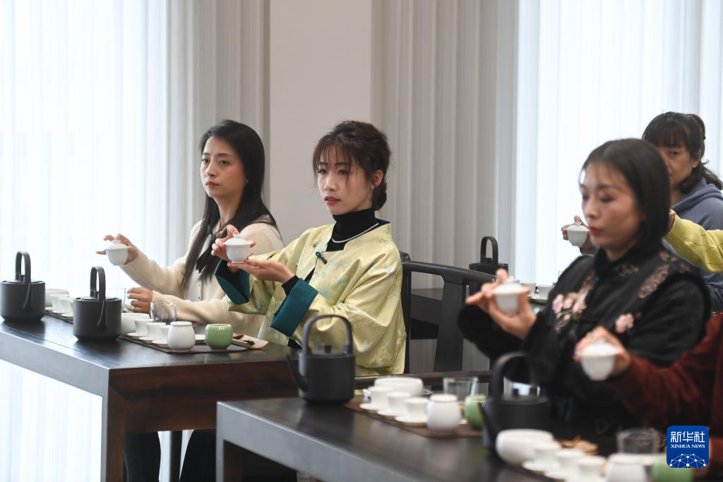 3月1日,吴兴区八里店镇女职工体验茶道。