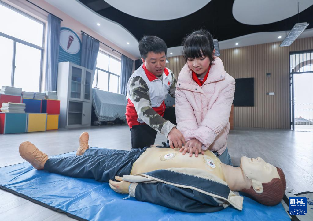 3月1日,东林镇卫生院党员志愿者向东林镇第二小学学生普及急救知识。