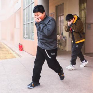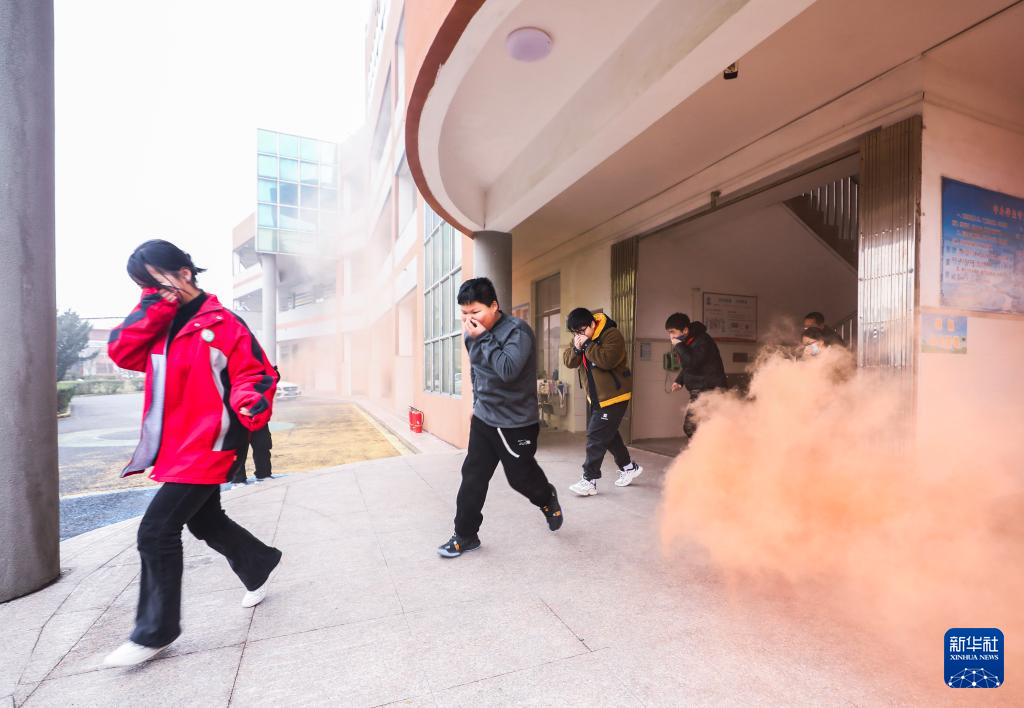 3月1日,东林镇第二小学的学生开展应急逃生演练。