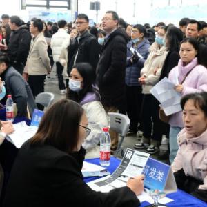 3月2日,求职者在人才交流大会现场应聘。