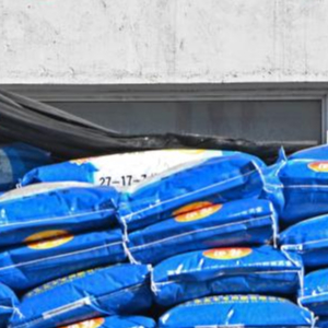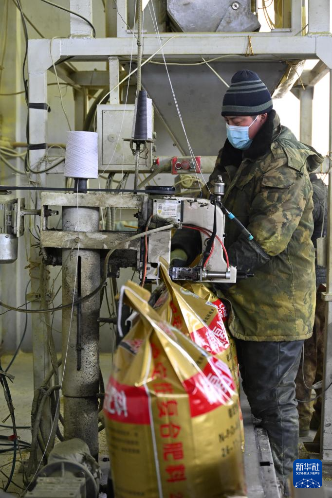 3月1日,在铁岭县辽宁东北丰专用肥有限公司,工作人员在给化肥包装封袋。