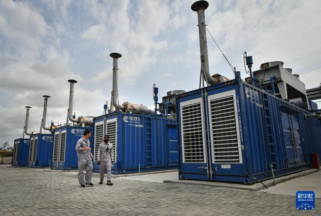 3月1日,在尼日利亚拉各斯,中尼员工走在莱基自贸区的电厂发电设施旁。