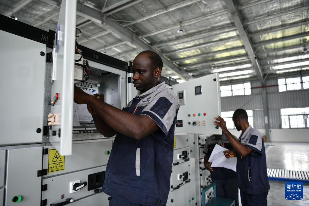 3月1日,在尼日利亚拉各斯,工人在莱基自贸区一家电气设备公司车间内工作。