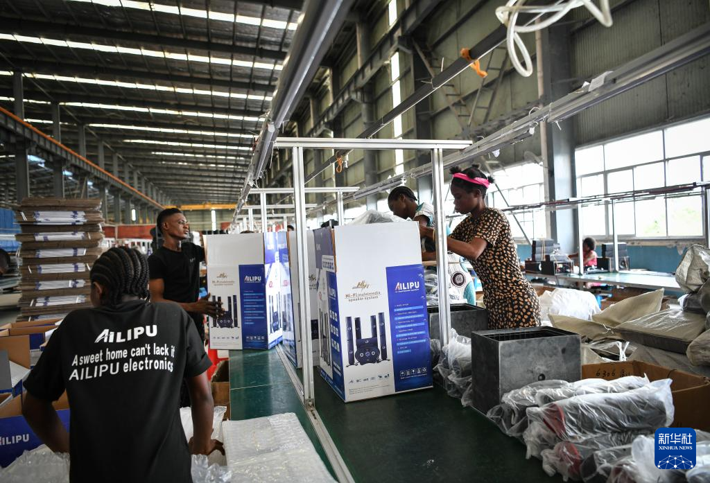 3月1日,在尼日利亚拉各斯,工人在莱基自贸区的一家音响公司车间生产线上忙碌。