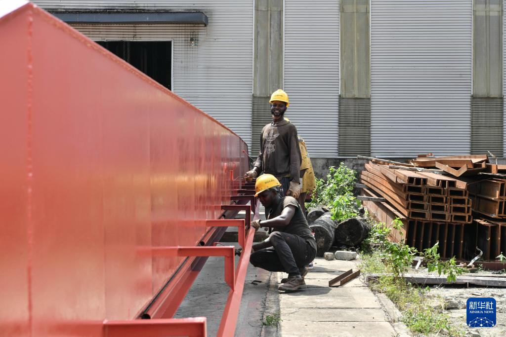 3月1日,在尼日利亚拉各斯,工人在莱基自贸区一家钢厂进行生产作业。