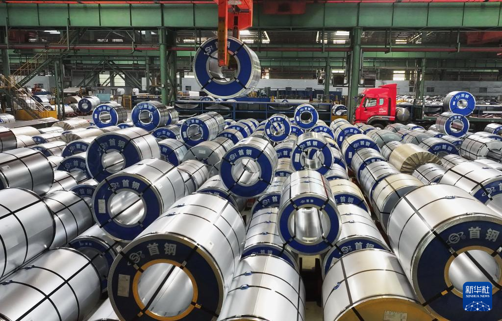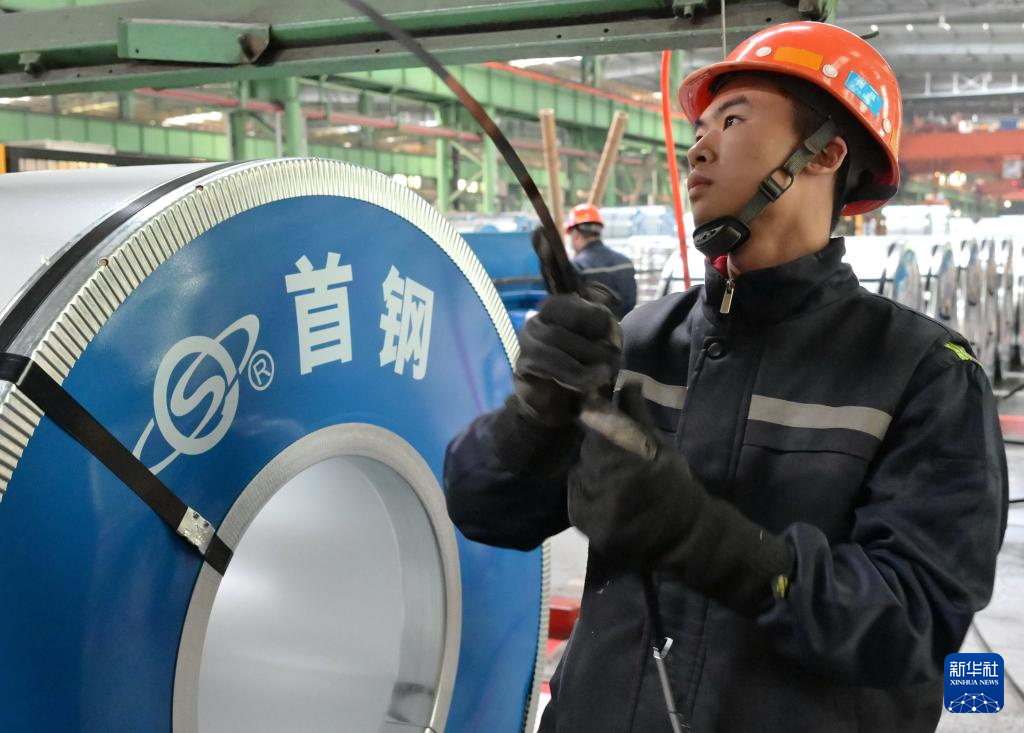3月1日,河北省唐山市曹妃甸区首钢京唐公司的工人在成品车间工作。