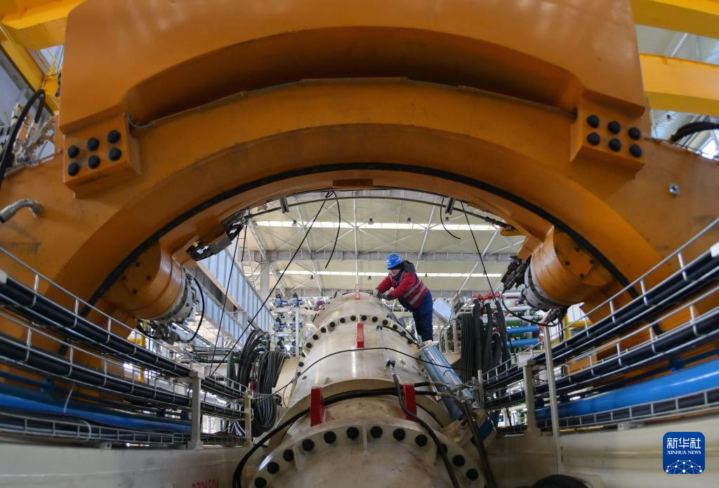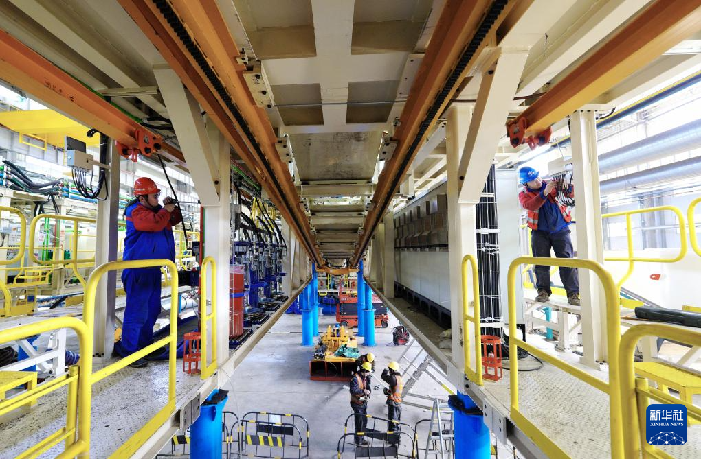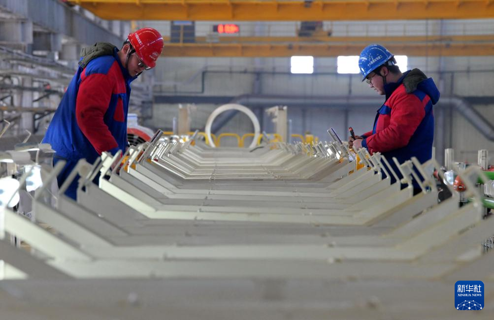 3月1日,河北省唐山市曹妃甸区中铁十六局曹妃甸重工机械公司的工人在盾构设备生产车间工作。