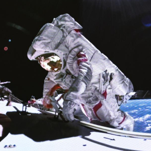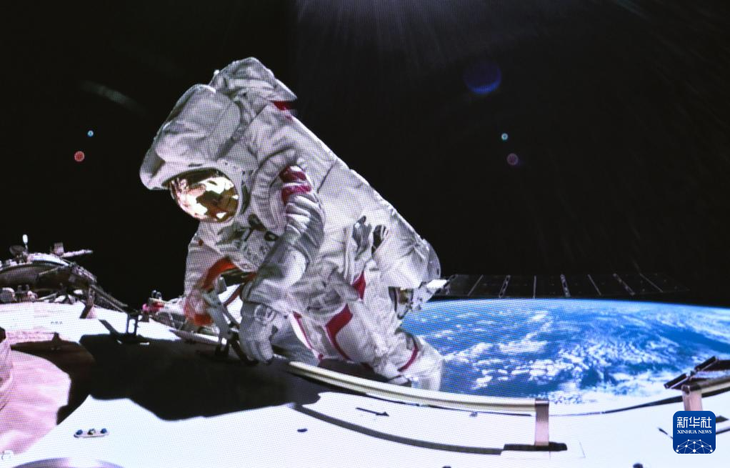3月2日,在北京航天飞行控制中心拍摄的神舟十七号航天员汤洪波在空间站组合体舱外作业。