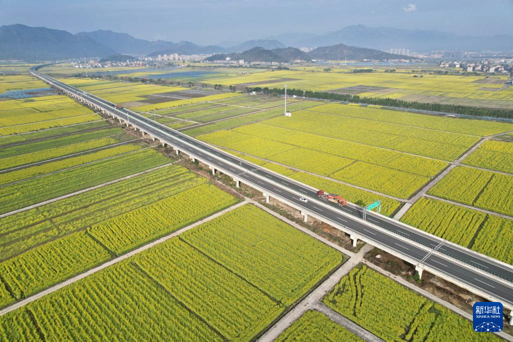 3月2日拍摄的浙江省瑞安市马屿镇油菜花海景色(无人机照片)。