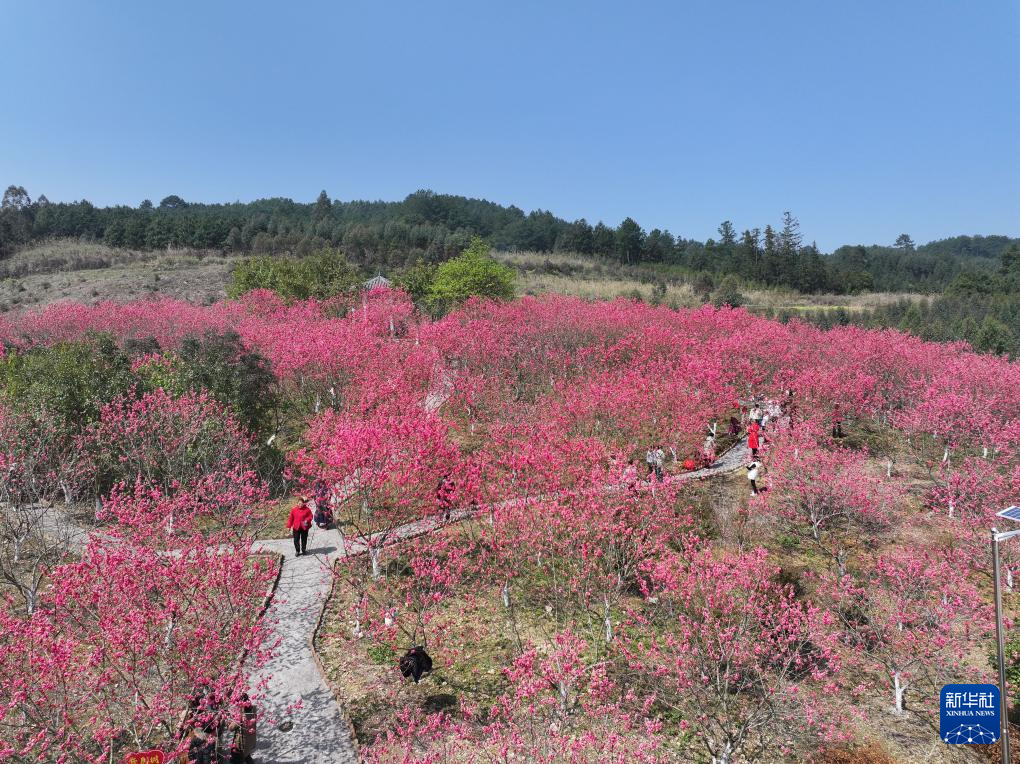 3月2日,游人在贵州省铜仁市松桃苗族自治县丹霞路赏花。