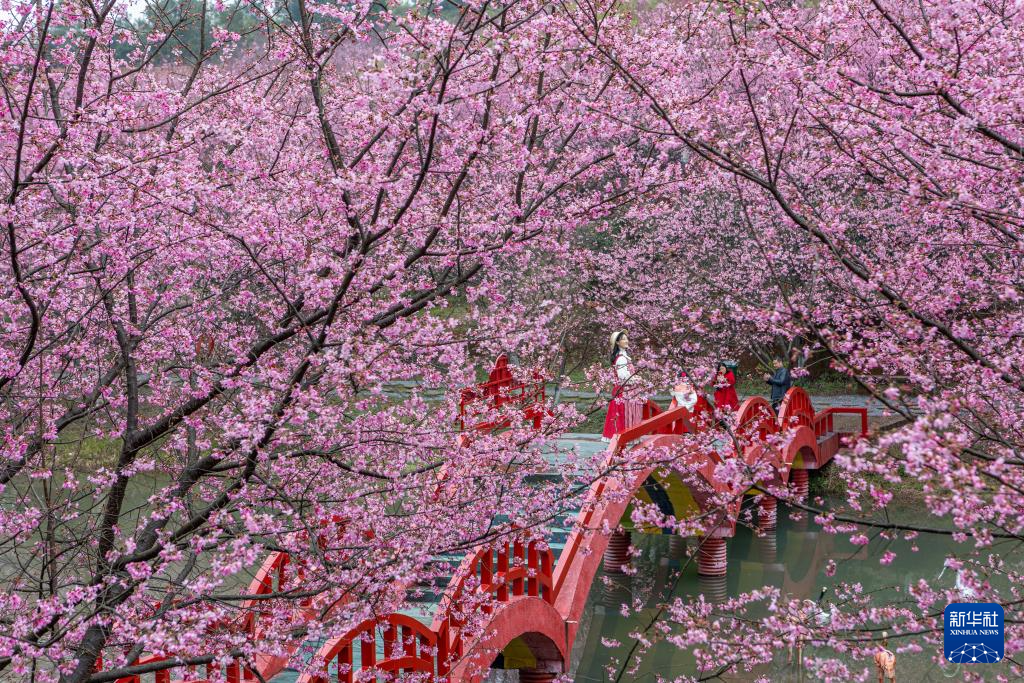 3月2日,游人在湖南省衡阳市常宁市百万樱花园景区游玩。