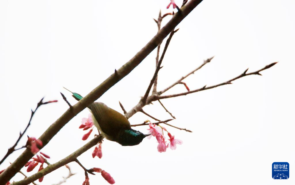 3月1日,在广西柳州市融安县东起乡铜板屯,一只小鸟停在枝头。