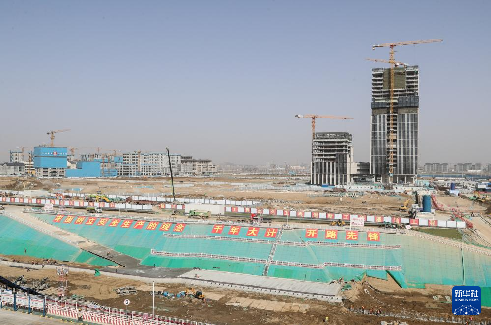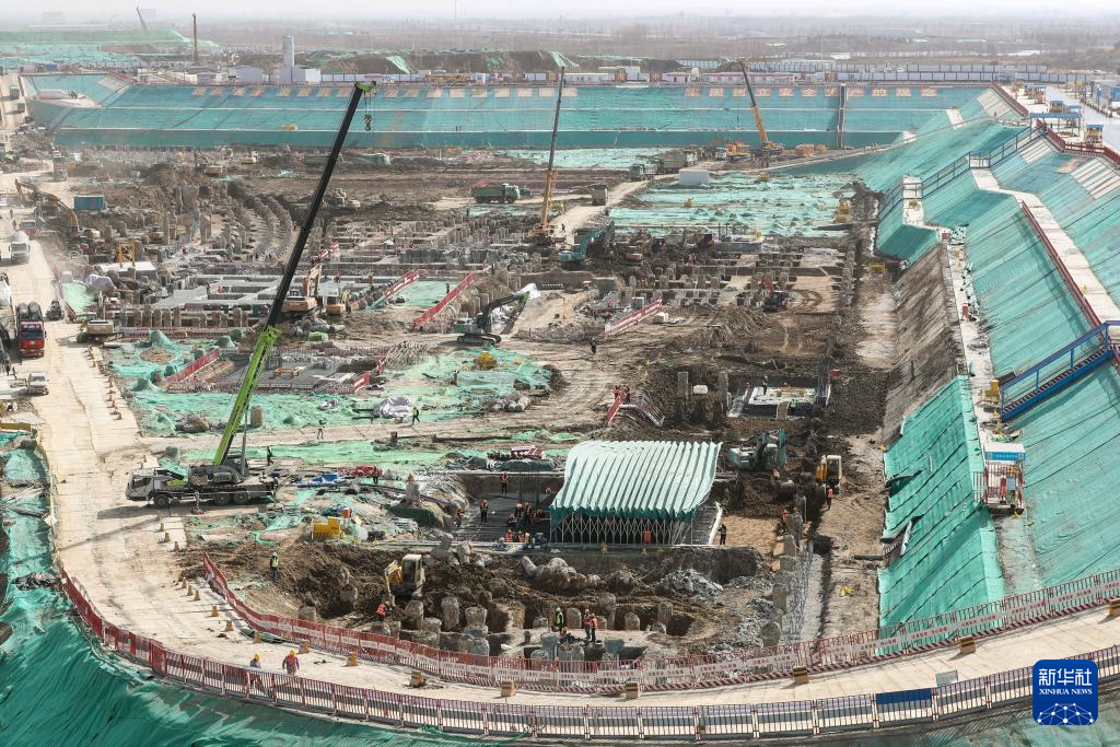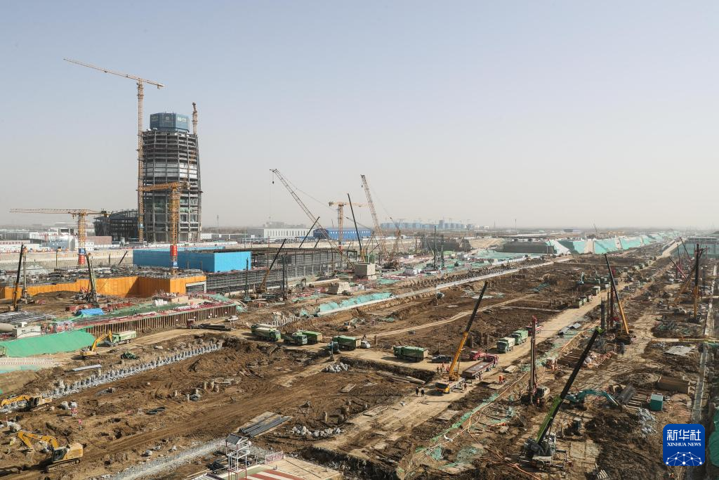 这是3月2日拍摄的雄安城际站及国贸中心项目建设现场。