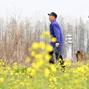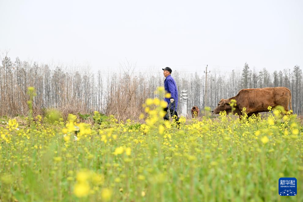 3月2日,在江西省南昌县塔城乡,农民在稻田里放牛。