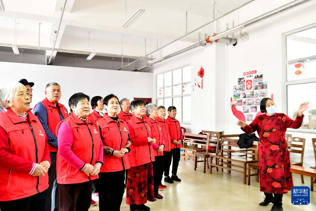 3月2日,在滨州市博兴县博华老年公寓文体活动室,老人们在排练合唱节目。