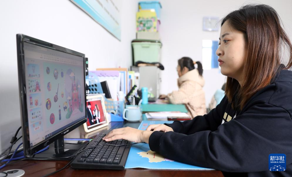 2月29日,凤城特殊教育学校的老师赵阅在办公室准备上课课件。
