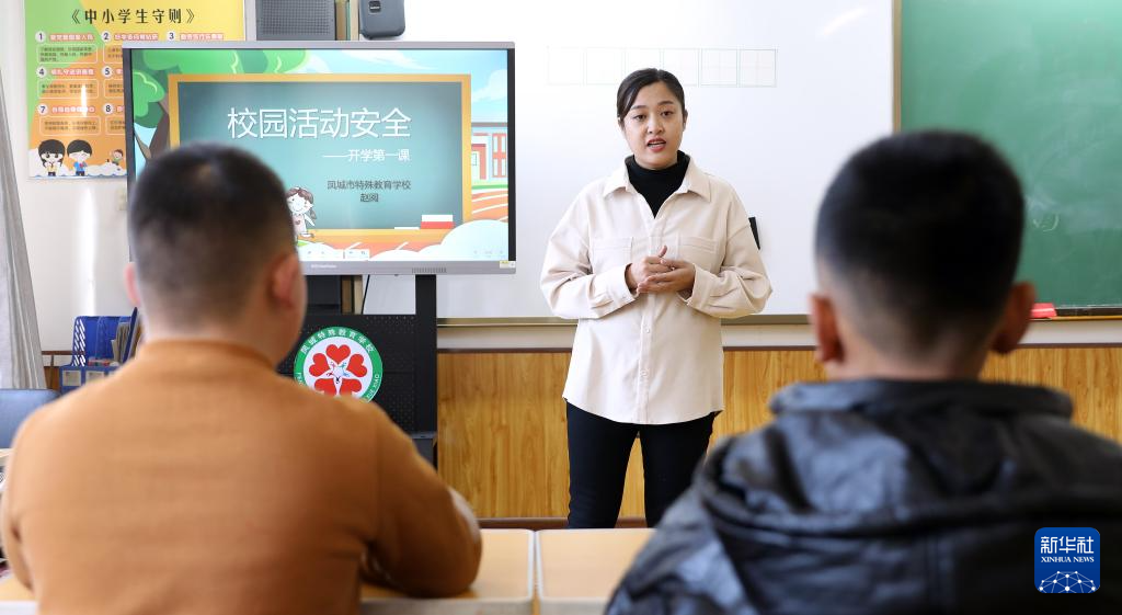 3月1日,凤城特殊教育学校的老师赵阅给学生讲开学第一课——校园活动安全。