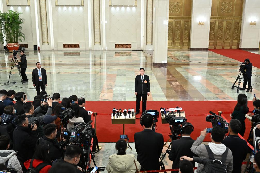 3月5日,第十四届全国人民代表大会第二次会议首场“部长通道”集中采访活动在北京人民大会堂举行。这是国务院国有资产监督管理委员会主任张玉卓接受媒体采访。