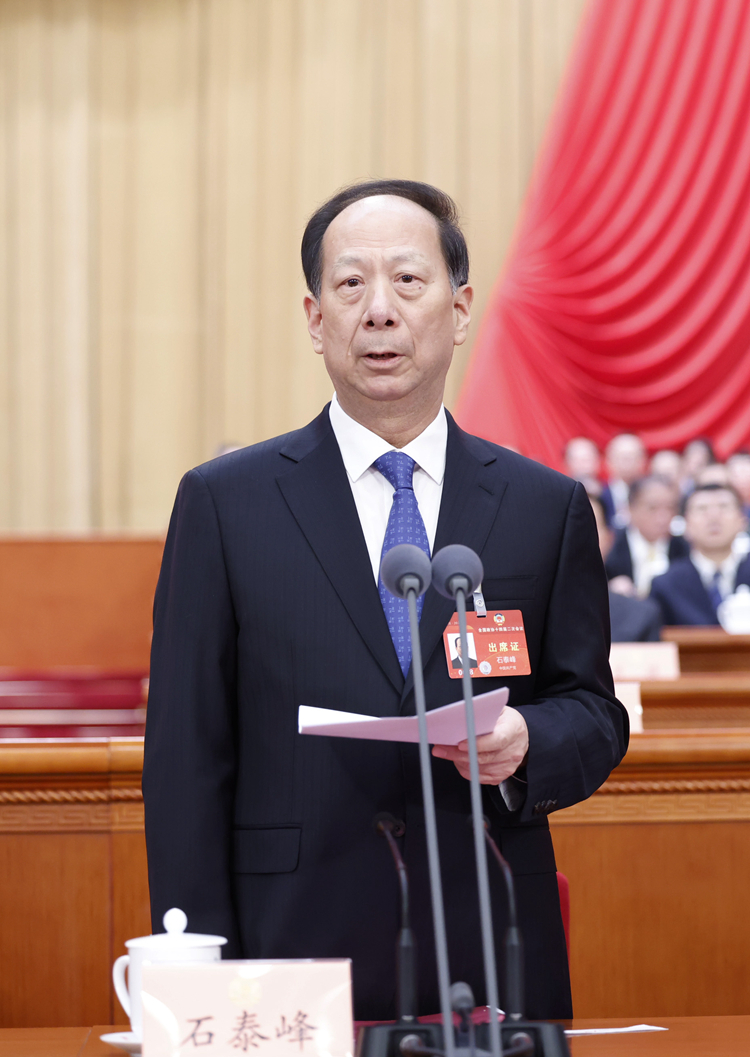 3月4日下午,中国人民政治协商会议第十四届全国委员会第二次会议在北京人民大会堂开幕。这是全国政协副主席石泰峰主持开幕会。