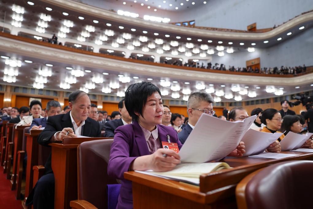 3月4日下午,中国人民政治协商会议第十四届全国委员会第二次会议在北京人民大会堂开幕。这是记者在会场拍摄。