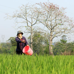 3月6日,农民在稻田里施肥。