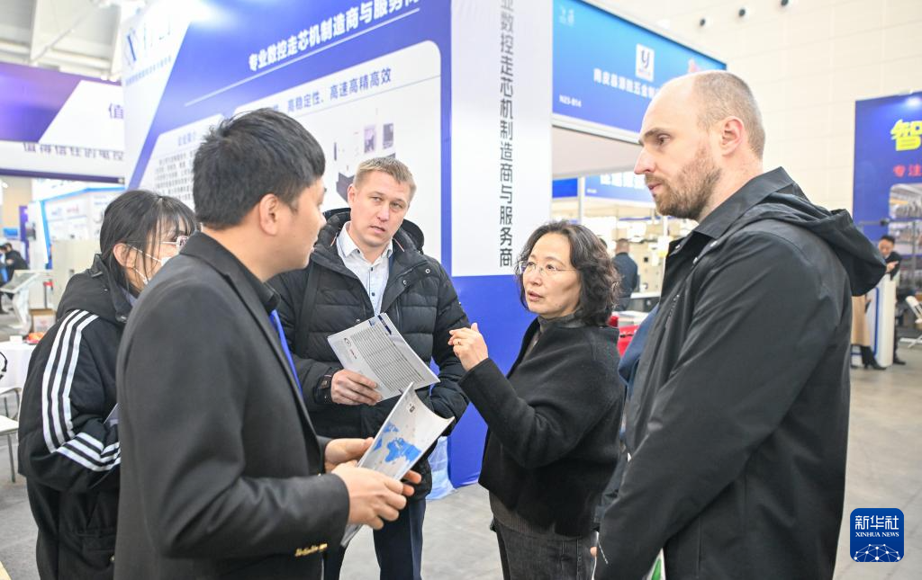 3月6日,来自白俄罗斯的客商在第二十届天津工博会上参观咨询。