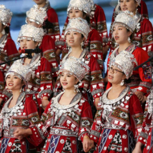 3月6日,人们在贵州省黔东南苗族侗族自治州丹寨县参加合唱比赛。