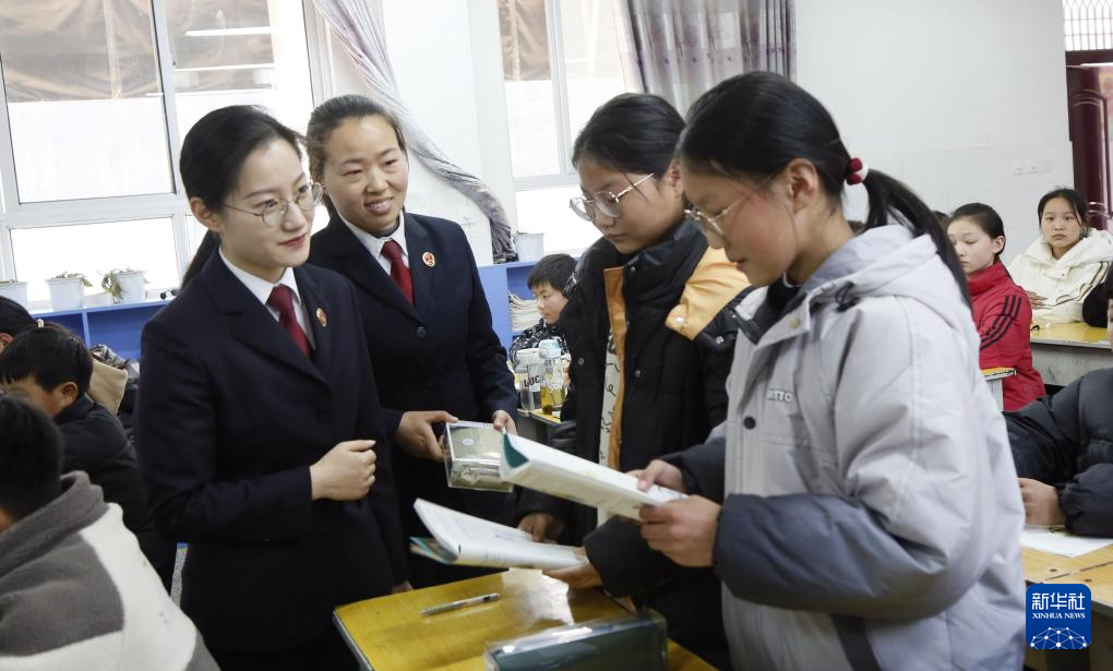 3月7日,河南省汝阳县人民检察院的女检察干警向王坪乡中心小学的学生宣传预防校园暴力相关的法律知识。