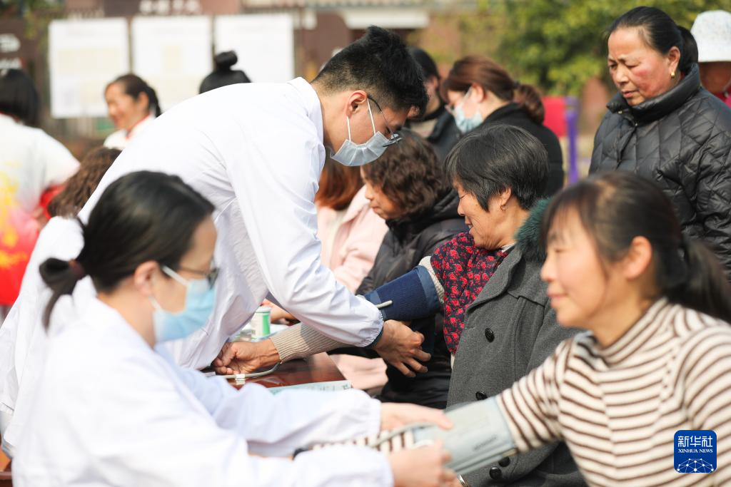 3月7日,在浙江省湖州市德清县下渚湖街道和睦村,医护人员为村里的妇女免费体检。