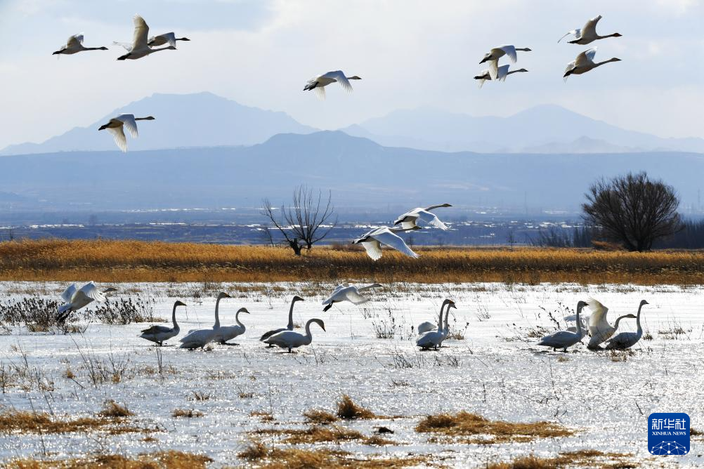 这是3月5日在河北怀来官厅水库国家湿地公园拍摄的天鹅。