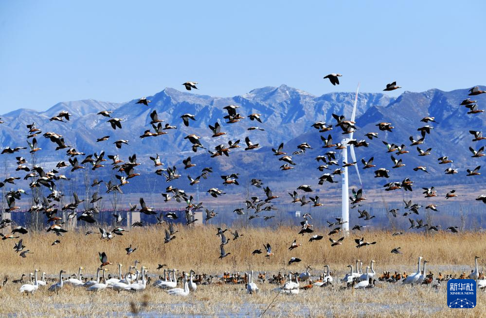 近年来,河北怀来通过生态补水、退耕还湿等举措,修复官厅水库生态系统,湿地生态环境不断改善,野生鸟类种群数量显著提升,“飞鸟成云”经常可见。