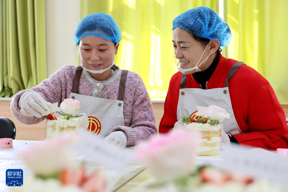 3月8日,山东省枣庄市市中区总工会的女职工在“学技艺 庆‘三八’”活动中学习蛋糕制作。