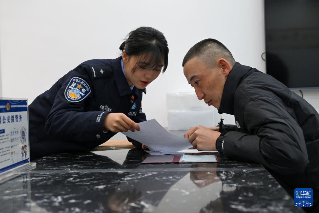 3月8日上午,在禾木边境派出所户籍室,蒋慧芳为村民办理户籍手续。