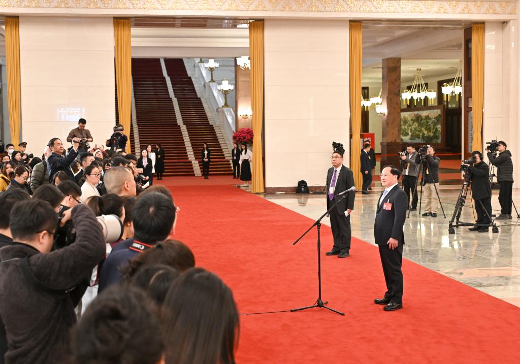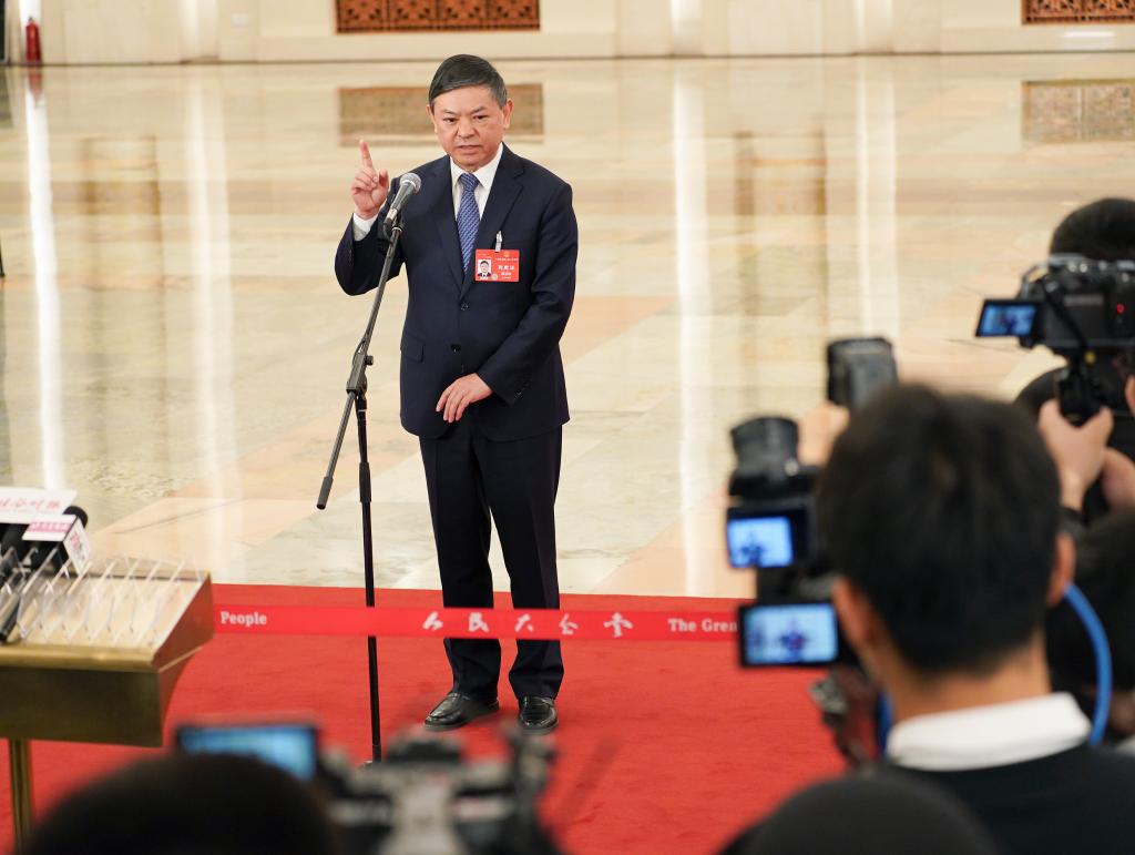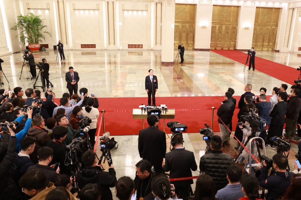 3月8日,第十四届全国人民代表大会第二次会议第二场“部长通道”集中采访活动在北京人民大会堂举行。这是工业和信息化部部长金壮龙接受媒体采访。