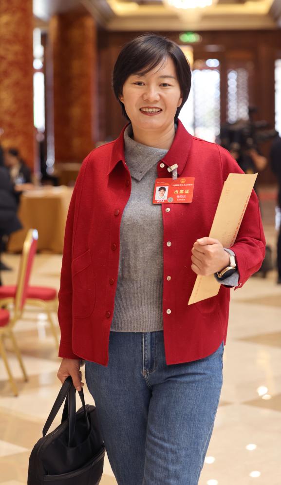 3月8日,岳巧云在十四届全国人大二次会议第二场“代表通道”集中采访活动中接受媒体采访。
