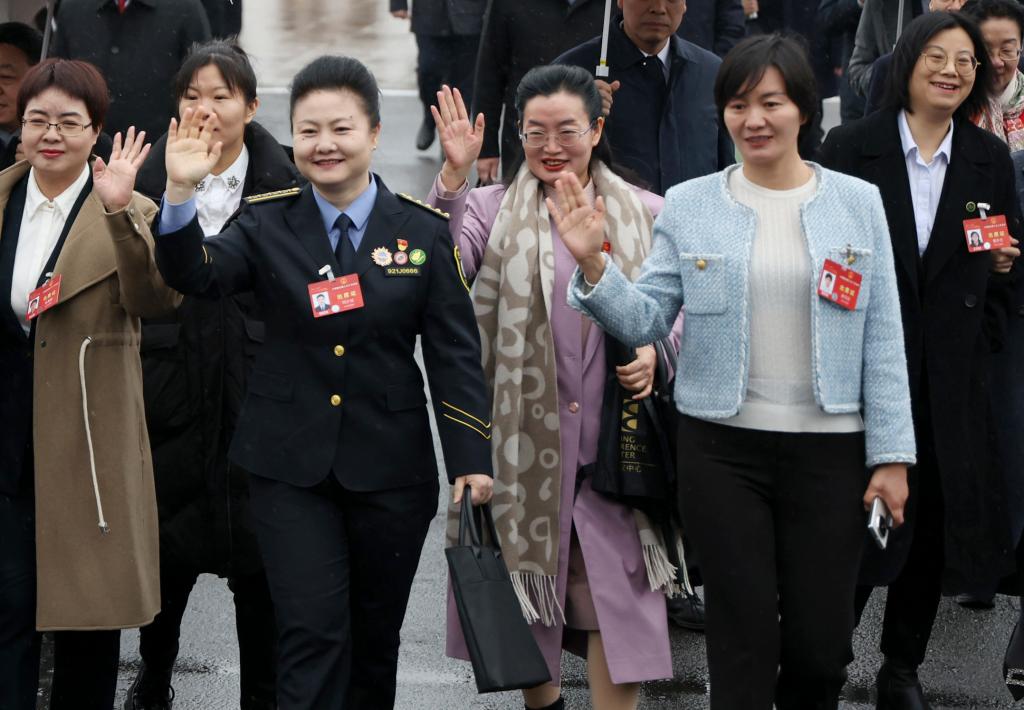 3月5日,岳巧云(前右一)走向人民大会堂,出席十四届全国人大二次会议开幕会。