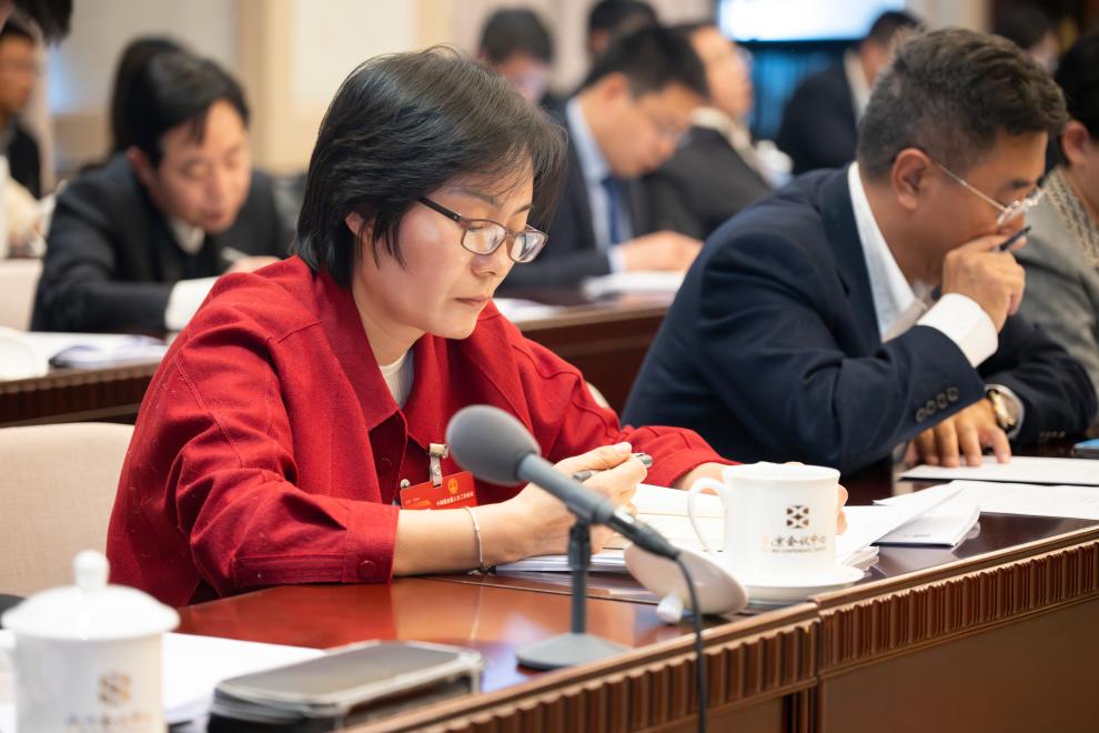 3月6日,岳巧云在驻地参加十四届全国人大二次会议北京代表团会议。