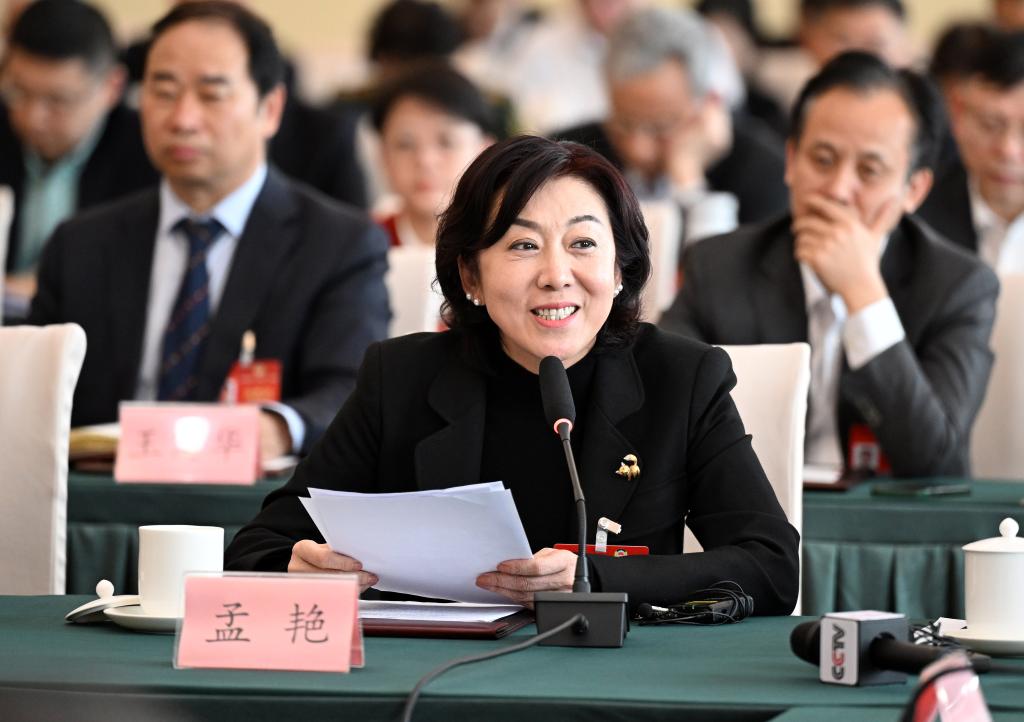 3月7日,全国政协委员孟艳在教育界别协商会议上发言。