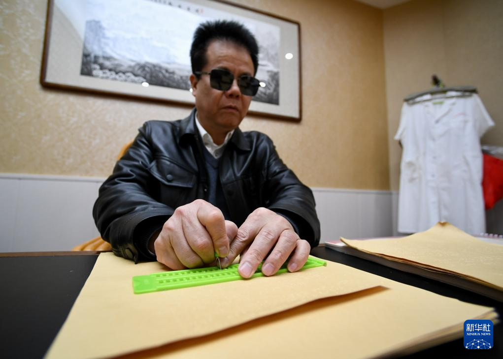 2月6日,王永澄代表在福建省海峡盲人按摩指导中心的工作室用盲文书写建议材料。