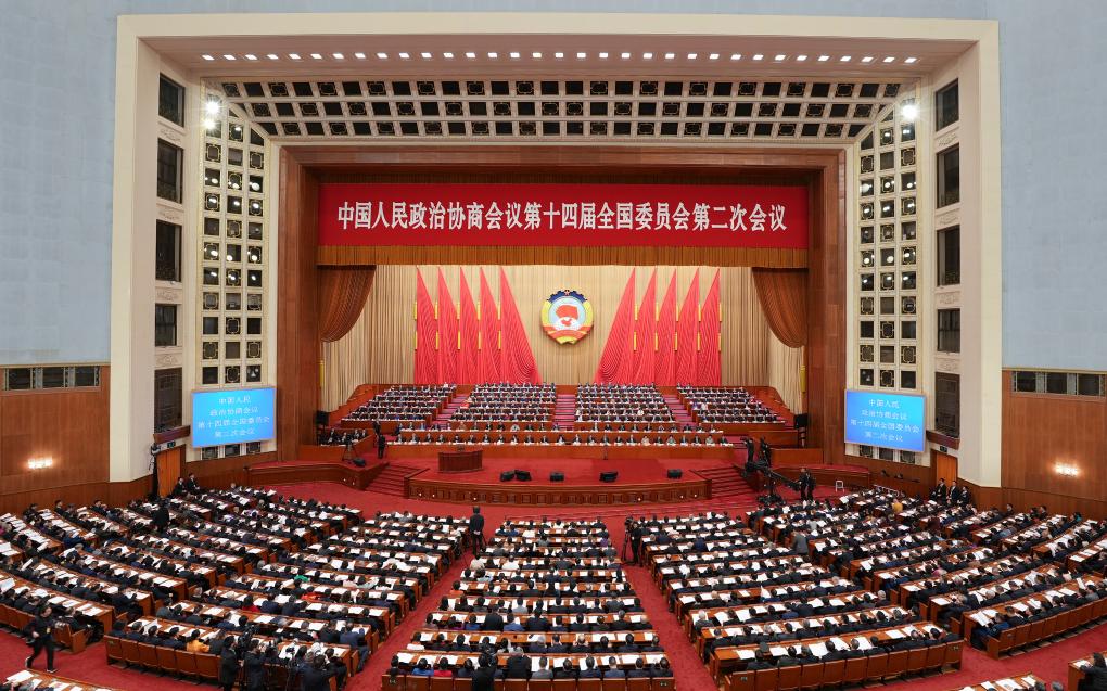 3月8日,十四届全国人大二次会议在北京人民大会堂举行第二次全体会议。