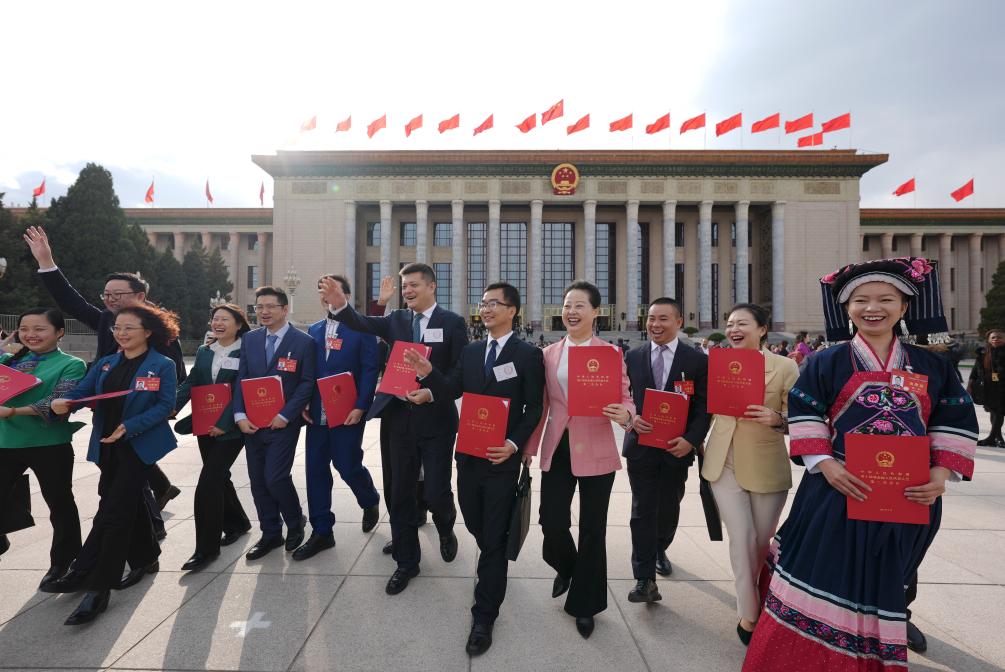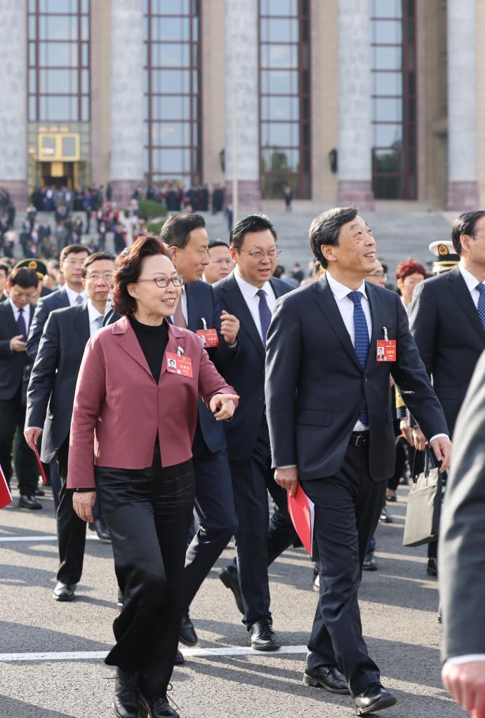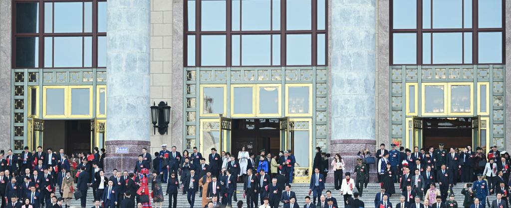 3月11日,第十四届全国人民代表大会第二次会议在北京人民大会堂举行闭幕会。这是闭幕会后,代表们走出人民大会堂。