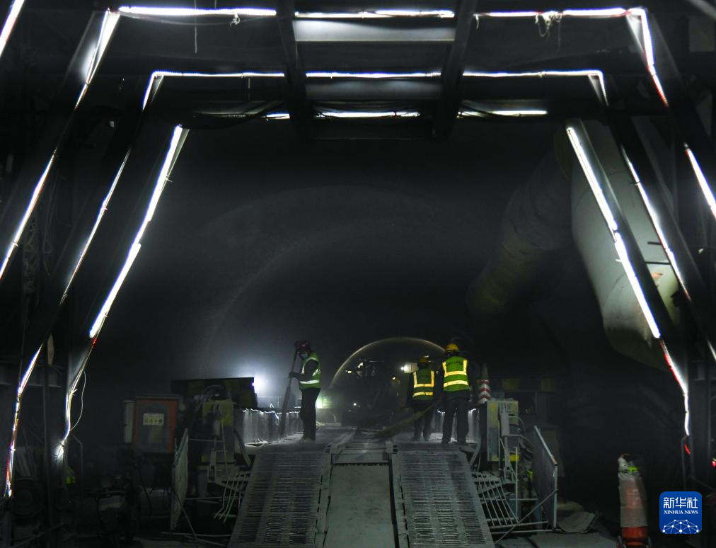 3月13日,在四川省阿坝藏族羌族自治州小金县,工人在国道351夹金山隧道主洞内施工。