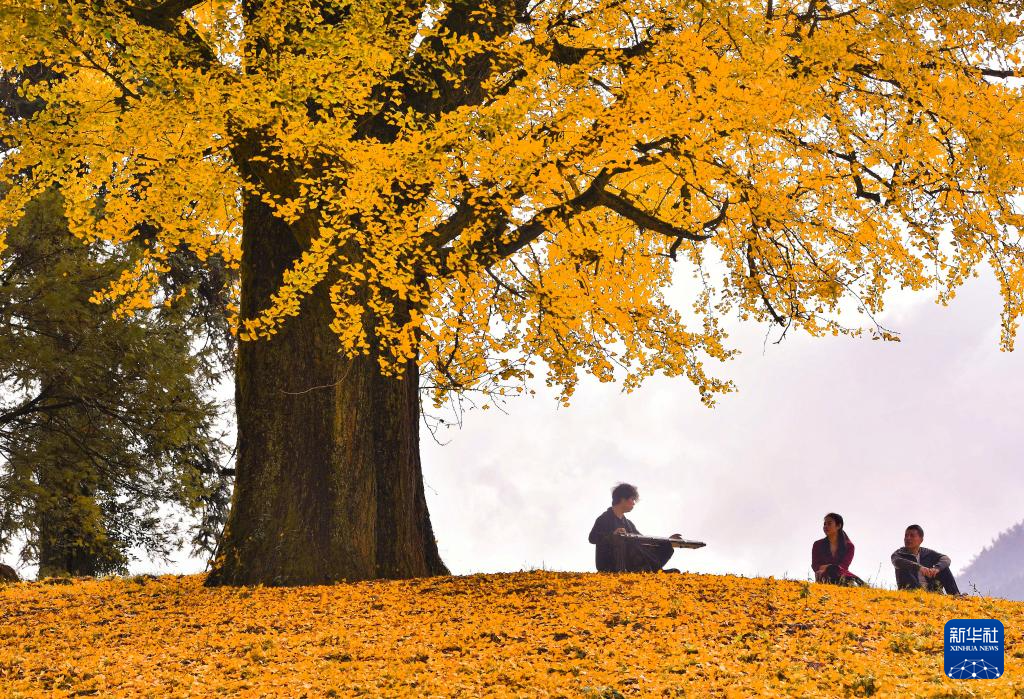 封益华在位于江西省宜黄县的公园内抚琴(2022年11月25日摄)。