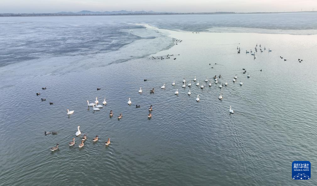 这是3月12日在卧龙湖湿地拍摄的候鸟(无人机照片)。