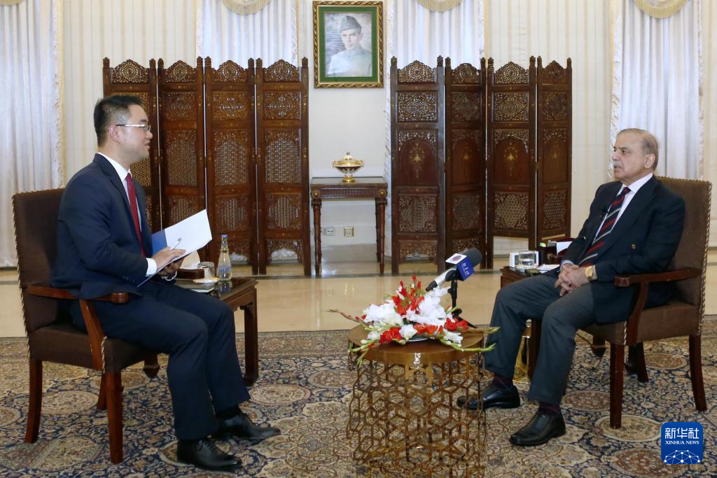 3月8日,在位于首都伊斯兰堡的总理府,巴基斯坦总理夏巴兹·谢里夫接受新华社记者专访。